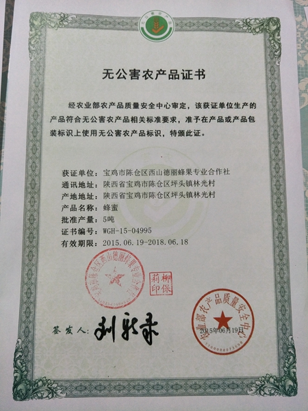 徳丽蜂果专业合作社,通过多年的发展,产品由一个纯粹的土蜂蜜,发展到陈仓区多个唯一土蜂蜜,即产品发展成为一个无公害土蜂蜜,一个工商注册土蜂蜜,一个销往西安,广州市场的土蜂蜜。随之合作社经营能力、生产水平也得到发展提高,不远的将来徳丽蜂果专业合作社定会成为西山群众脱贫致富的领头雁。